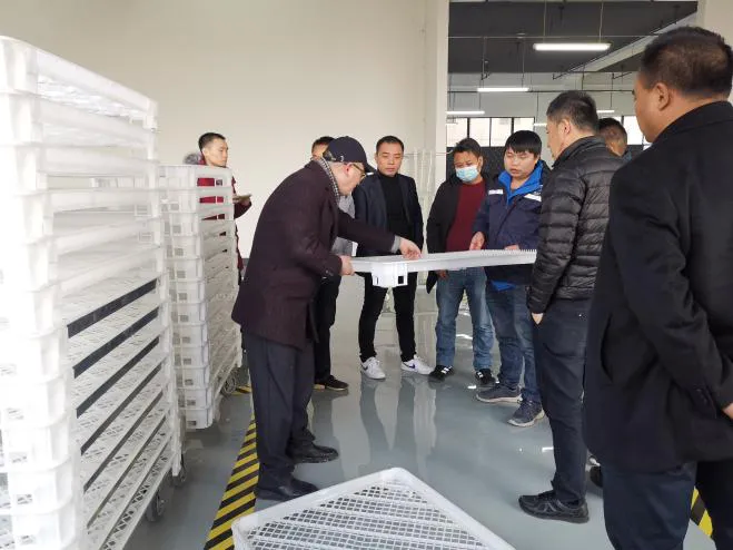 在生产制造车间和测试中心,考察团参观高端新型智慧桑蚕养殖设备给桑、消毒、预翻砂、翻砂、上蔟全流程,对机械部分和自动控制系统提出了一系列专业问题,现场工程师一一做了讲解。考察团表示:高端新型智慧桑蚕养殖设备解决了消毒、供电、能耗和养殖节拍等蚕桑养殖中的痛点,实现了养殖和生产分离,设备的性价比非常高,是适应市场需求的高水平产品。
